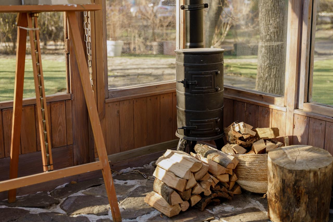 Поруч з ним: ошатні ялинки, декоративне вогнище, садове крісло й декор для теплих зйомок серед холодної зими