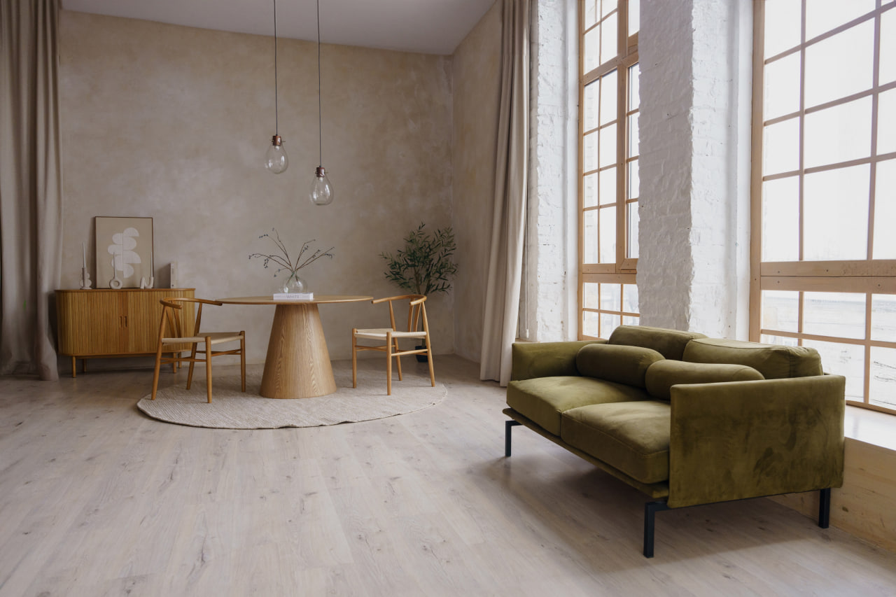 Modern – сучасна студія з великими вікнами, стилізованими меблями та ексклюзивним декором. Залу розділено на окремі зони.