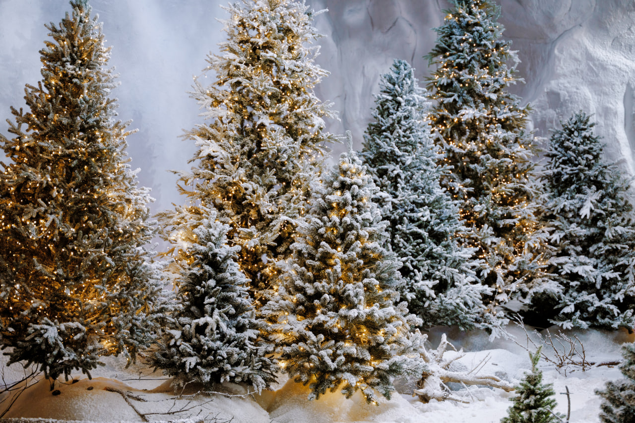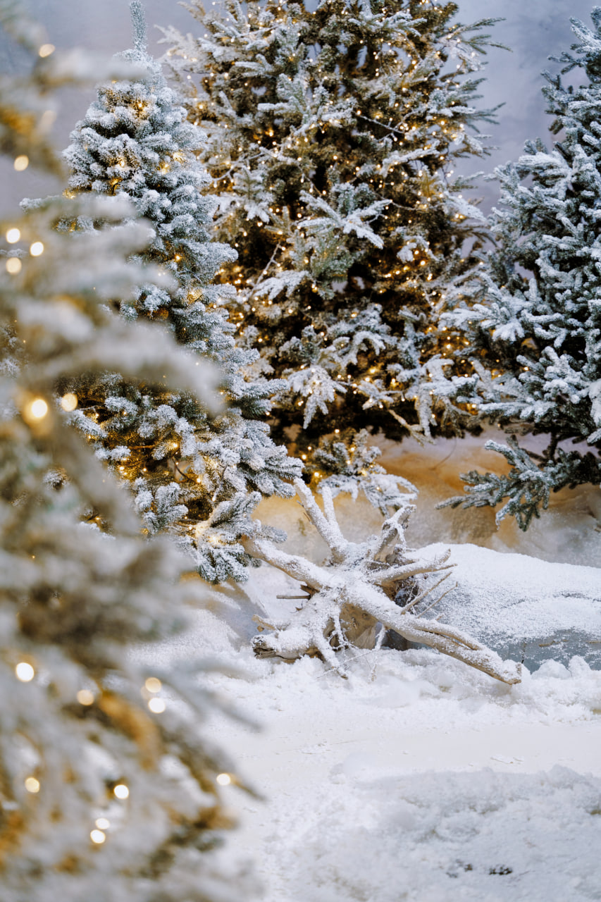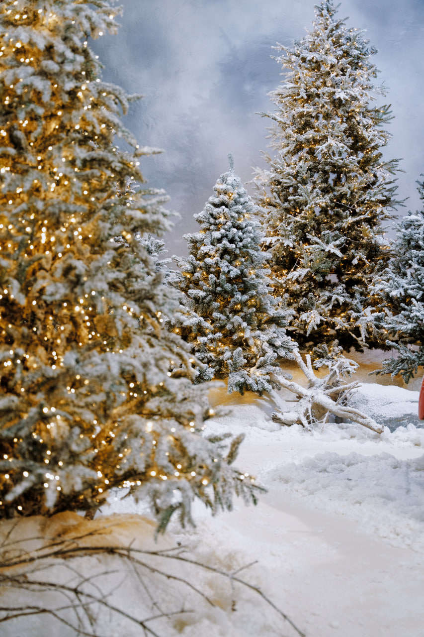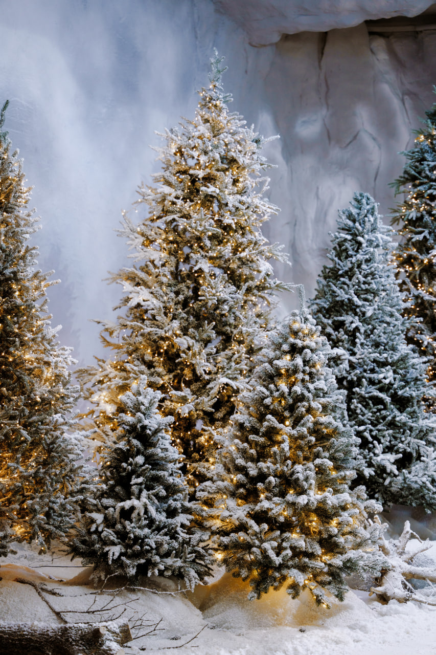 Сніжний ліс – масштабніша інсталяція з ялинками висотою до стелі (від 1,5 до 3,5 метри) та казковими вогниками гірлянд.